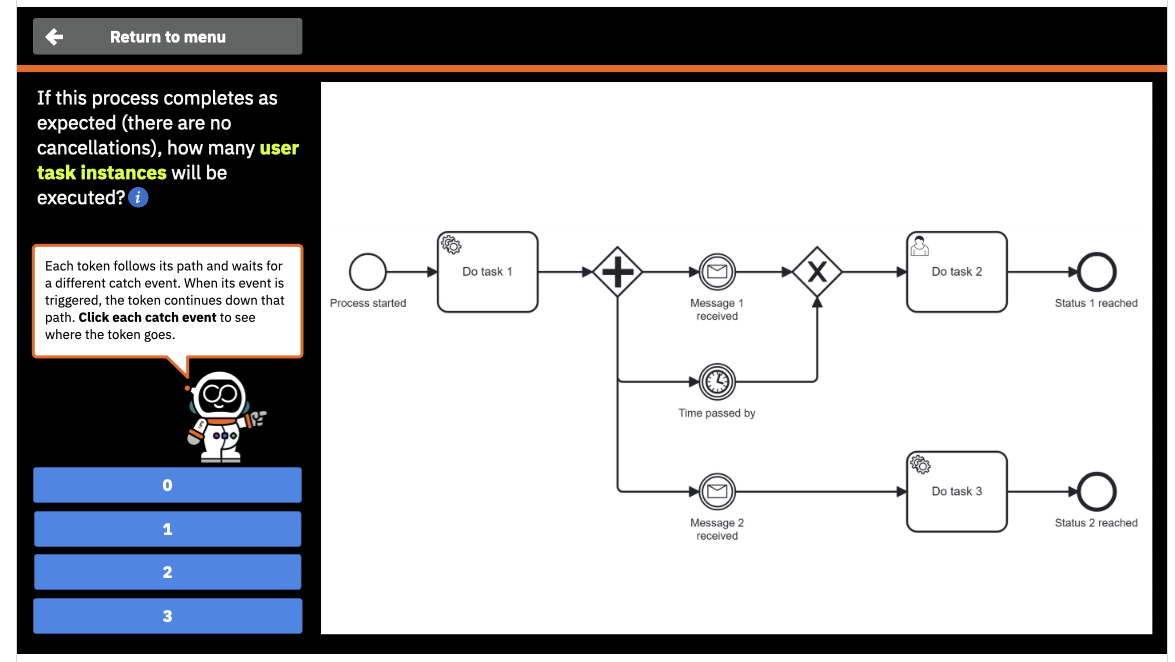 It might be that it’s Friday afternoon and really missing something but I cant move on from Q2 on the BPMN Challenge. I have answered the question, played the animation, but no way to mark it as complete to move on to Q3. Attached a screenshot to show.