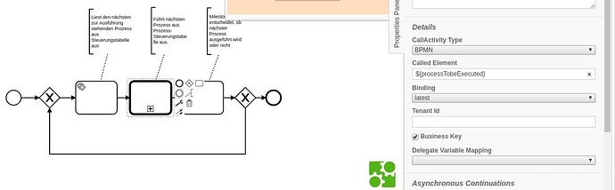 thank you very much. I opened it in the modeller. The only difference that I can see comparing to my process is that you execute an automated task where you call a Javascript routine that sets the context variable (execution.setVariable(‘subProcessName’,‘secondary’);