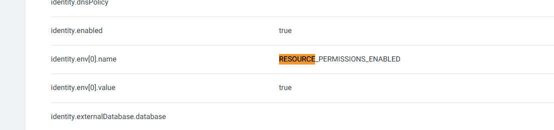 Hi @LuckyLuk - you will only see environment variables that were set by the deployment; there are defaults for most of the settings (for RESOURCE_PERMISSIONS_ENABLED the default is false). That’s why it was visible after you added it, and why other settings may not be visible in your config.