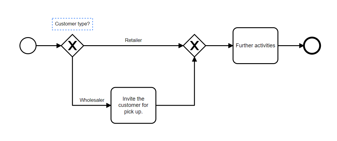 Yet another approach could be to simply implement the condition in the activity itself. In case of an automated task, just do nothing. In case of a user task, immediately complete it somehow. Both suffer the same problem: it’s not obvious from the model that the activity is sometimes executed and sometimes “skipped”, nor what the condition for doing either is.