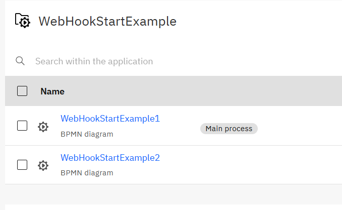 In Web Modeler, select each webhook start event