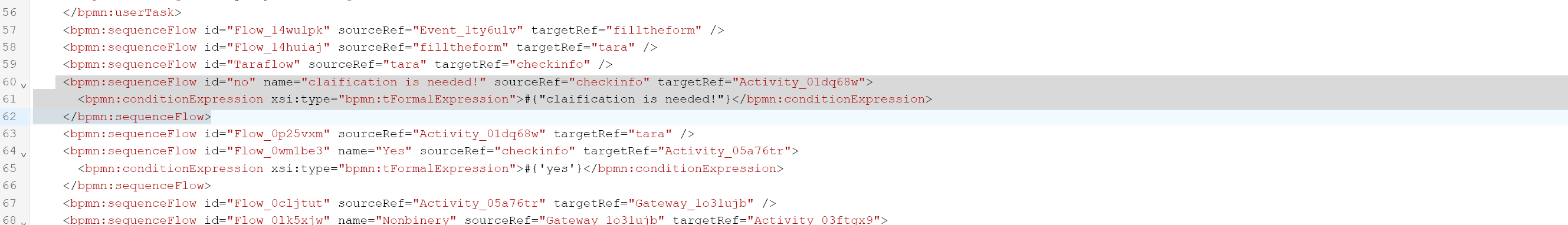 I have an exclusive gate way. in condition expression once I wrote ${manager==‘clarification’} and ${manager==‘yes’}, (manager is the key of the manager form).