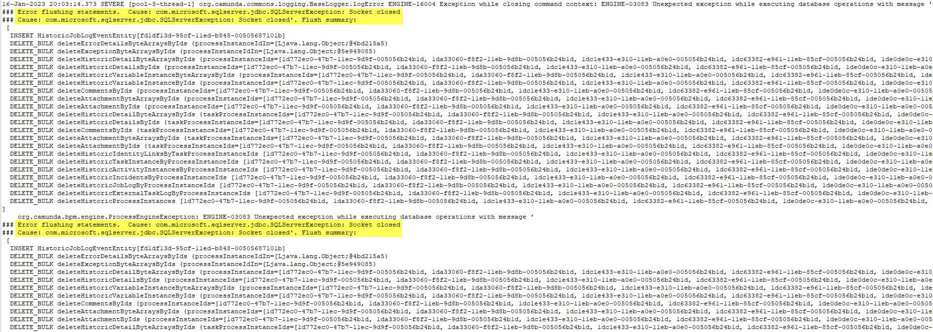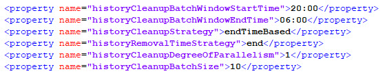 today I found at least one process-definition where the number of entires decreased compared to yesterday. But what’s still strange is, that I defined a clean-up window from 8PM to 6AM. But when I check the JOB_LOG-Table, I only have 34 entries for this night: