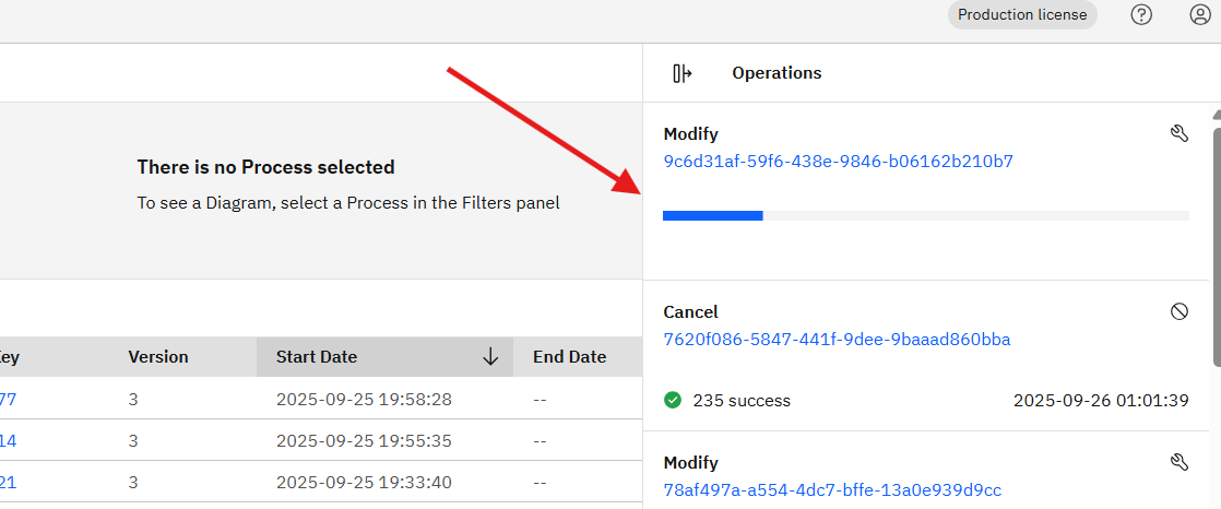 During certain operations — such as moving an instance, canceling a process, or attempting to delete a process after it has been canceled — the system gets stuck.