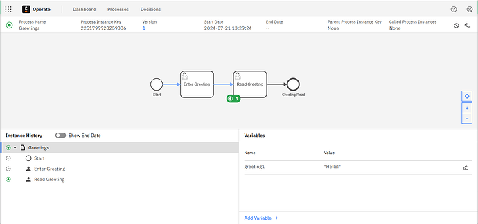 I deployed a version of the process with linked forms. Now greeting1 is kept among the process variables, but the second form still does not show it in the field.