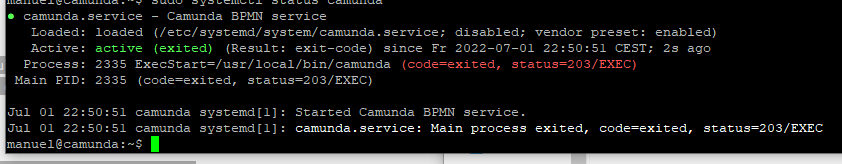 @davidgs i recognized when i run “systemctl start camunda” it works but when i do “systemctl enable camunda” it wont run after reboot. Ooops, i forgot to disable the cronjob “@reboot” ![]()