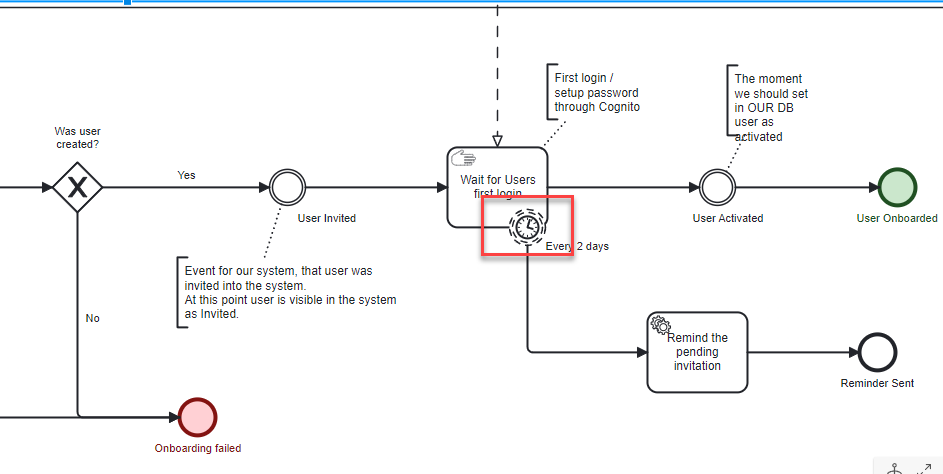 BTW our process in this part, after user is created, it will send reminder to the user every after 2 days until he logs in